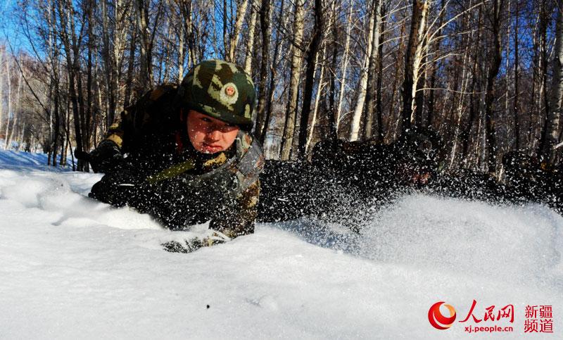雪地摆战场,冰天练精兵。连日来,新疆阿勒泰地区普降大雪,气温骤降,武警新疆边防总队阿勒泰边防支队富蕴县边防大队组织官兵开展冰天雪地练精兵活动。通过战术搜索队形、匍匐前行、擒敌配套等科目训练,提升官兵在恶劣天气和复杂环境的作战能力,全面锤炼官兵能力素质。(通讯员石晓坤 刘涛 李小洲)